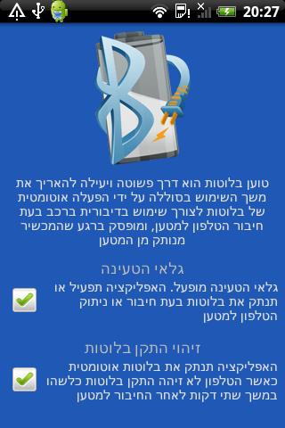 Simple? Yes. But sometimes, simple things are the best. Bluetooth Power does not take up any memory on your phone, nor does it consume any battery except for the instant in which you plug or unplug your phone – in fact, Bluetooth Power helps you save battery power by ensuring that Bluetooth is ON when needed, and OFF when it's not needed!
