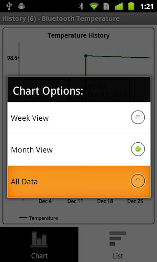 SimpleEye Bluetooth Temperature records, charts and shares temperature measurements from an external Bluetooth-enabled thermometer or manual input. Version 3.0.0 provides: