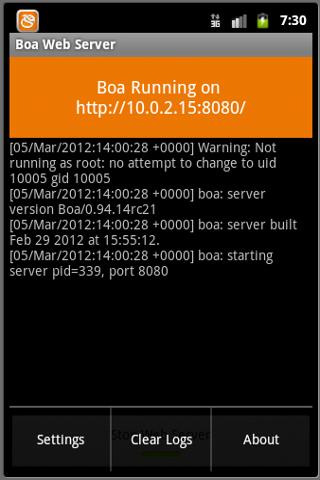 Boa is a small-footprint Web Server, which can instantly transform your phone or tablet as a file server. It is primarily used for FILE SHARING (mp3's or movies). It supports HTTP-1.1 protocol.