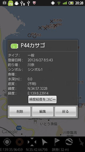 "Boat NAVI" is an application which assists your boat fishing with Google Map and GPS data. You can save your known fishing points, and boat tracking line, with GPS data and date time. And, "Boat NAVI" navigates you to the saved point at next time. Let's teach your friend the saved point which can be fished ,using "Boat NAVI".
