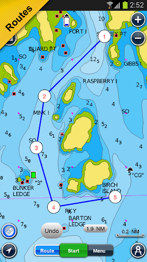 Record and view your tracks. Create and edit routes based on cruising speed and fuel consumption. Measure distance.