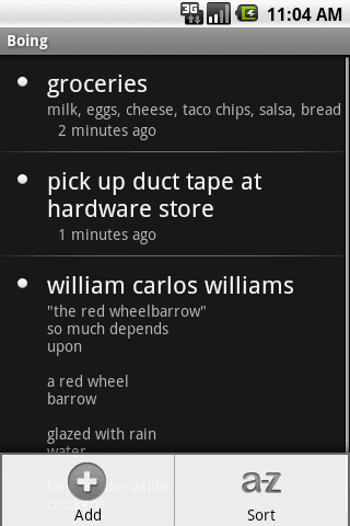 Boing is a simple todo list with optional notes that lets you check off items using a swipe gesture.