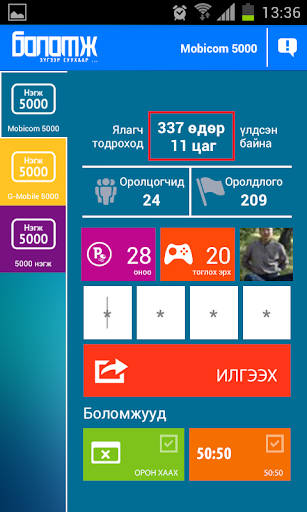 Тааварт оролцоходоо хожих магдлалаа өсгөх боломжуудыг ашиглах эрхтэй. Боломжуудыг өөрийн онооны сангаас дараах байдлаар хасаж ашиглах болно.