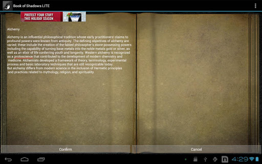 Book of Shadows and Light © 2012 presents the Book of Shadows LITE for Droid. Now everyone can have a Book of Shadows on Android at no cost! Only simple ad bar ads to help us make more amazing free stuff! (No Air Push ads) Be sure to upgrade to the Book of Shadows Pro or HD if you want to show your support for the developer.