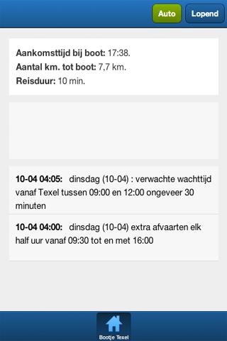 Deze applicatie vraagt je huidige locatie op en berekent vervolgens of je de boot kunt halen. Aan de hand van je locatie wordt bepaald of je je op Texel of buiten Texel bevindt.