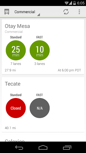 - Uses your current location (if enabled) to display wait times for the border crossings near you.