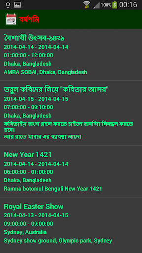 Borshoponjee is a complete Bengali calendar widget, providing dates as per "Bangla Calendar". User will be able to view different scheduled events on the dates. It will allow user to add locations ie. Dhaka, Bangladesh or London UK and the events of those locations (if any) will get listed.