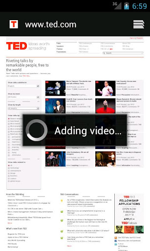 Supports Youtube, TED, Vimeo and other video sharing sites.
