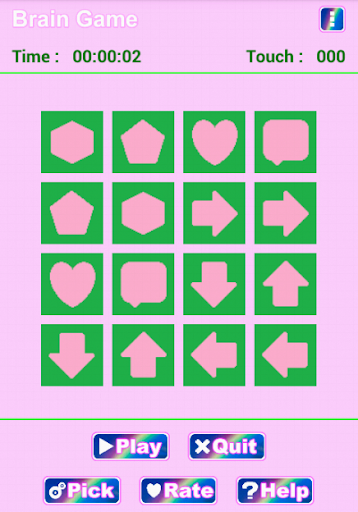 Brain Game is especially designed to exercise your brain. Brain cells are activated by concentrating to remember the items in short span of time and complete the game with less moves. This game can be played by kids of age 2+. This will help them to remember the items as well as help them to match the shapes and numbers.