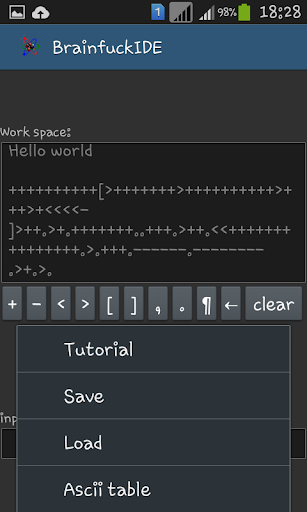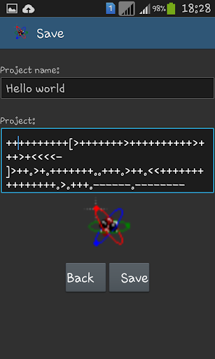You can write Brainfuck programs quickly and simple. This is very easy to use. Of course you can save your programs, and easily reload it later. You can see tutorial programs to learn the application use.