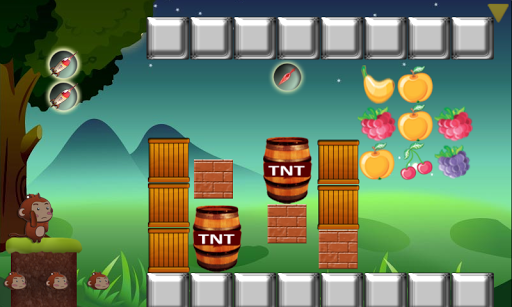 In the year 2525, Antarctic ice sheets collapse and global sea levels rise by 13 feet. The last surviving monkey family finds an island previously untouched by humans. They use their creative skills to find food. Please help the monkey to use various tools and weapons to find food.