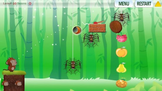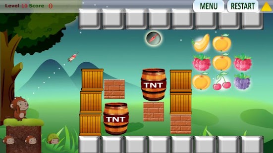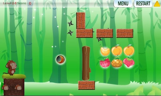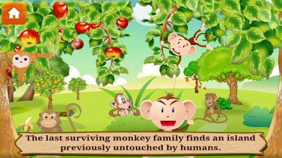 Antarctic ice sheets collapse and global sea levels rise by 13 feet in the year 2525. The last surviving monkey family finds an island previously untouched by humans. They use their creative skills to find food. Please help the monkey to use various tools and weapons listed below to find food.