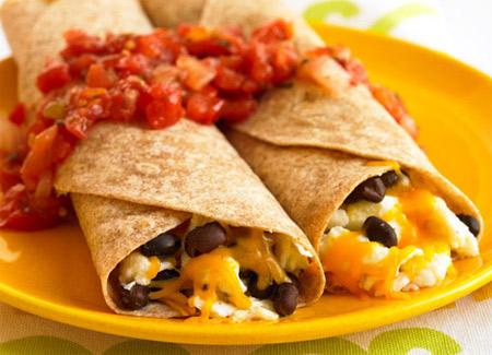 9. Pancake Cones: Make thin 6-inch pancakes using your favorite pancake mix. Spoon a few tablespoons cottage cheese and 1 tablespoon jam onto each one. Roll into cones.