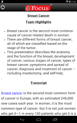 The Breast Cancer app - helps in understanding the disease condition through ANIMATED VIDEOS. This presentation contains informative visuals on the anatomy and functioning of breast, origin and types of breast cancer, tumor staging, symptoms, diagnosis, treatment and self-care guidelines.