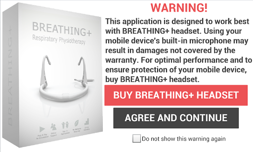 WARNING: This application is designed to work best with BREATHING+ headset. Using your mobile device's built-in microphone may result in damages not covered by your warranty. Additionally, BREATHING+ headset provides hands-free operation, firm position in front of your mouth and a much better signal-to-noise ratio resulting in more accurate breathing detection. For optimal performance and to ensure protection of your mobile device, buy BREATHING+ headset: http://www.breathinglabs.com/breathing-package/
