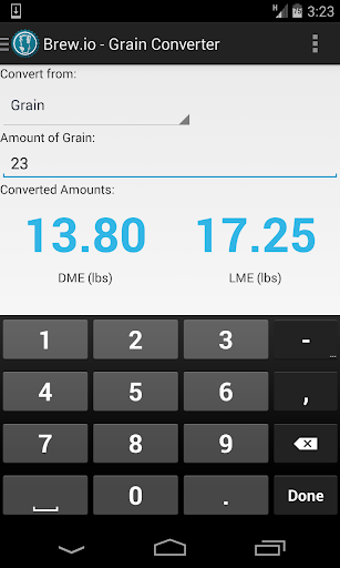 Brew.io calculates the strike temp for mashing, converts full grain recipes to Dry Malt Extract (DME) or Liquid Malt Extract (LME), calculates your Alcohol content ABV & ABW, and priming sugar calculation for bottling. We hope you enjoy Brew.io and welcome any comments and suggestions to support@winslow.io
