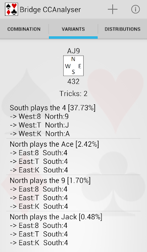 Bridge CCAnalyser - Bridge Card Combinations Analyser - is an app for analysing card combinations in Bridge.