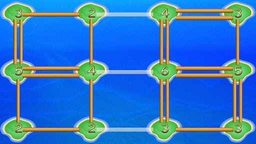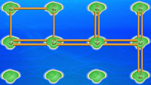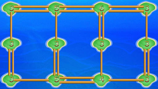 the number on an island is the number of bridges connecting to that island.Two islands can be connected by at-most two bridges.