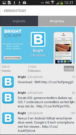 Met deze gratis app blijf je op de hoogte van het programma via notificaties en updates. Je ziet in een oogopslag wat waar hoe laat is tijdens Bright Day.