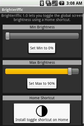 Brighteriffic lets you toggle the global screen brightness using a Home shortcut.