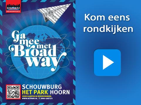 Krijg een virtual voorproefje van het theaterconcert 'Ga mee met Broadway'. Met behulp van de bewegingsensoren in uw telefoon kunt u 360 graden om u heen kijken, alsof u er alvast echt bij bent.