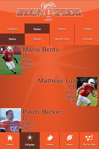 Aplicativo da equipe de futebol americano Curitiba Brown Spiders, com informações sobre os jogos, news, tabelas dos campeonatos e lance a lance ao vivo dos jogos realizados.