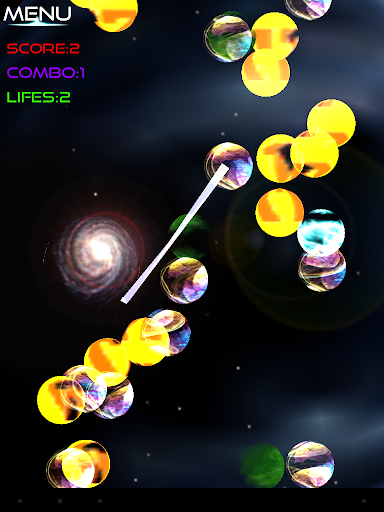 Ambientado en el espacio y con gráficos casi full hd tendrás que mover tu dedo a toda velocidad cazando las burbujas por la pantalla.