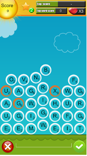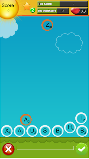 Points are associated with every word a player spells; the bigger the word, the bigger the score will be. Another way to improve your word score is by using the red and orange bubbles. Using the red bubble to spell a word will triple the score associated with the word and using the orange bubble will double the word score.