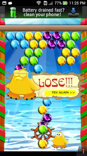 when the bubble reach a cartain deadline or you run out of times. all the bubble will got frozen and you lose. but don't angry, you can try unlimited times.