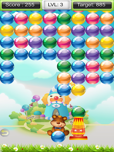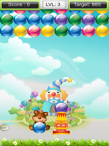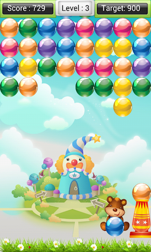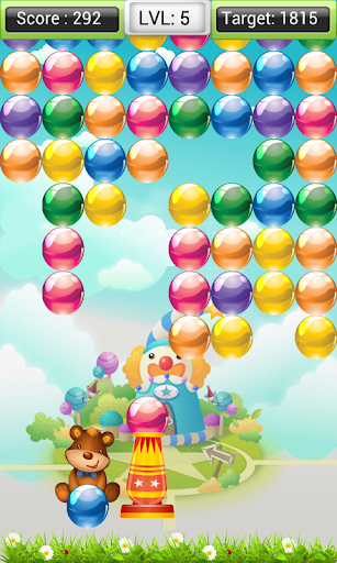 Bubble Shoot is a fun bubble breaking multi level game, each level has target score to move to next level. Start game by tapping new game in menu screen and then tap on game screen to point the shoot gun and then release tap to shoot ball. The gun can be moved horizontally to change the position of the bubble. Level fail if player is unable to achieve target score or the falling balls touches the barrel.