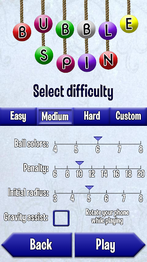 Also be sure to check out the 'Gravity assist' option! If this option is turned on, rotate your phone while playing, and the field rotates as well!