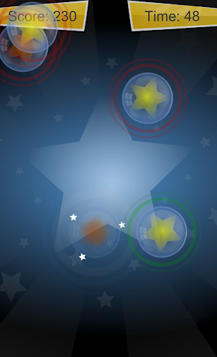 Timed bubbles are falling down, and you have to wait untill they turn green to pop them. Each round lasts for 60 seconds, so you have to be careful and score lots of points. The game also has bonuses that drop depending on your performance. These special bubbles either freeze the clock or give you more time to play, so you can keep on popping bubbles and scoring points. Also, there's a very dangerous, but also very valuable bubble, called The Black Hole. This one gives you lots of points if popped while green, or ends the game if popped incorrectly or it falls of the screen. As for getting bigger and bigger scores, after getting past a certain value, the bubbles will be giving you increasingly more points, depending on how many consecutive bubbles you managed to pop. You can also submit your highscore and compete with your friends, so don't forget to share the game with them and have fun popping bubbles. You might even be the new Bubble Star!