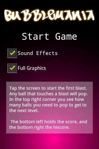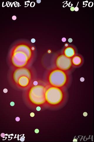 A chain reaction game. Tap the screen to start an explosion. Any bubble on the screen that touches the blast will explode and any bubble that is near that new blast will explode... and so on.