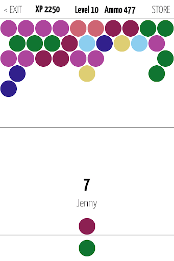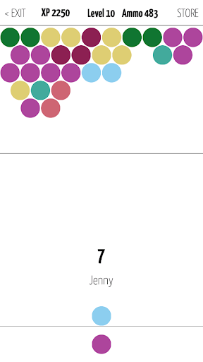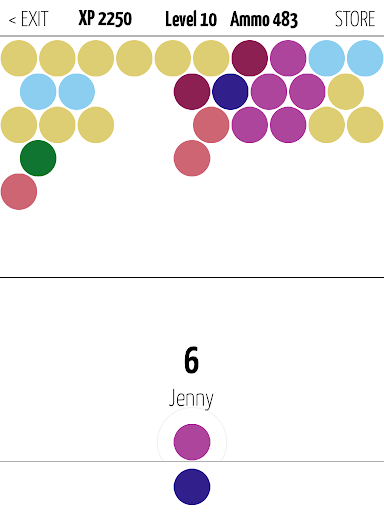 In this simple puzzle game, match 3 bubbles of the same color to clear them. Clear an entire screen, and you gain experience to level up. The screens get harder as you level up. How far can you go?