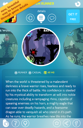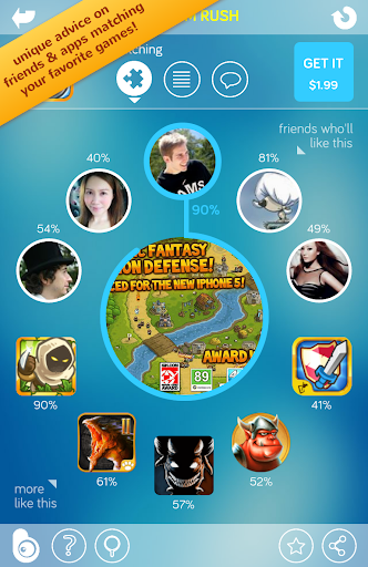 - “Your friends will love this”: with a single tap (using Facebook connect) see which of your friends would likely enjoy a game, and recommend it to them!