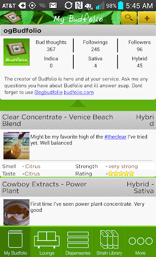 Budfolio is a personal strain journal application available and social social network medical marijuana patients, cannabis enthusiasts and dispensaries.