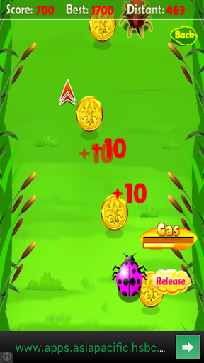 Bug Rush Hour Game is a crazy bug run dash game where the ladybug or ladybird utilizes the elastic slingshot on the floor to accelerate with full speed rush. The bug village is under assault by bug smasher hunter and he needs to roll and rush to find a new garden. You need to avoid crush from bigger bug enemies and collect the coins from the generator. Tap to release beetle gas out in order to perform bug zap boost for extra speed. Have fun, challenge, and fight with your friends to see whose beetle is the highest score breaker by going to the farthest distance.