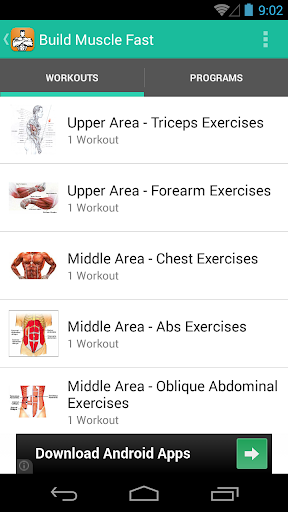 此應用程序將有助於讓肌肉結實它包含3個區建立肌肉,這個地區是: