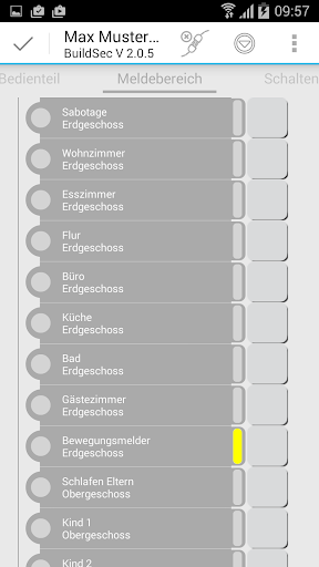 Ansicht offener Meldepunkte (Tür, Fenster,...)