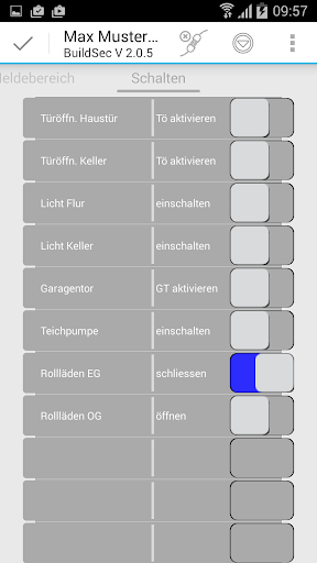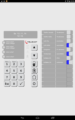 Der Funktionsumfang entspricht dem Fernbedienmode der Einbruchmelderzentrale über das Bedienteil, welches auf der Benutzeroberfläche des Mobiltelefons abgebildet wird.