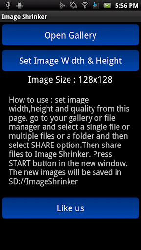 go to your gallery or file manager and select a single file or multiple files or a folder and then select "SHARE" option.Then share files to "Image Shrinker".