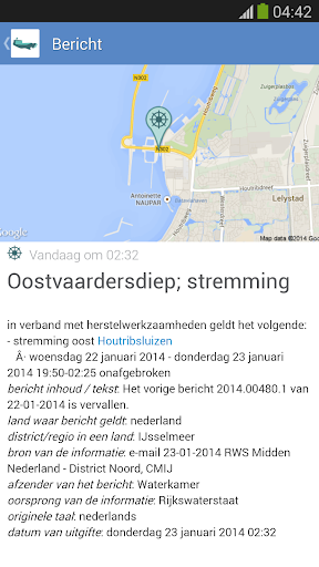 Meld de reis aan en krijg daarbij de scheepvaartberichten, openingstijden en doorvaarthoogten van bruggen en viaducten, informatie over havens, waterhoogten en veel meer te zien op de kaart. Deze app slaat reis- en ladinggegevens op, zodat eerdere reizen bekeken kunnen worden. Waterhoogten en scheepvaartberichten worden vrijwel direct opgehaald nadat Rijkswaterstaat ze heeft gepubliceerd. De informatie over openingstijden en doorvaarthoogten wordt regelmatig ververst.