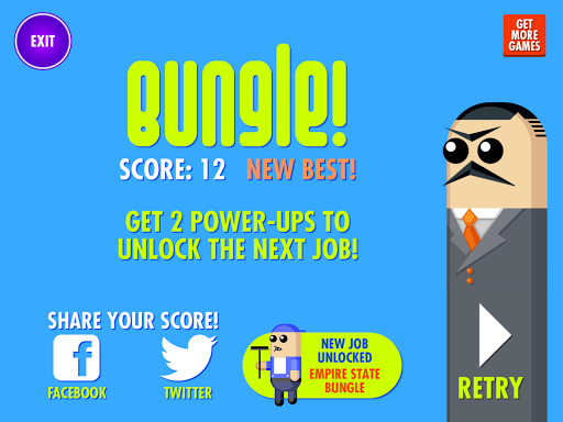 Bungle! is a fast-paced reflex game that's easy to play and hard to master. There are a lot of jobs to do and your boss is watching -- one mistake and you're fired!
