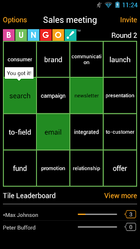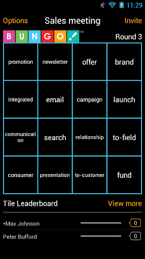 Make that meeting, conference, lecture or television show more fun by making a game of it. Bungo! Is a real-time multiplayer bingo style word game that allows you and friends, or the presenter, to make a game out of the content is being presented. Simply tap a word tile on the grid when you hear the word spoken and the first person to get 4 in a row, 4 down or 4 diagonally wins the round. If you can read, you can play. It’s that easy!