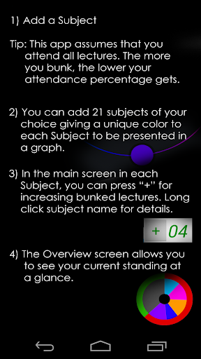By setting your minimum attendance percentage criteria, the app will tell you the Maximum number of times you can bunk a subject maintaining a minimum attendance.