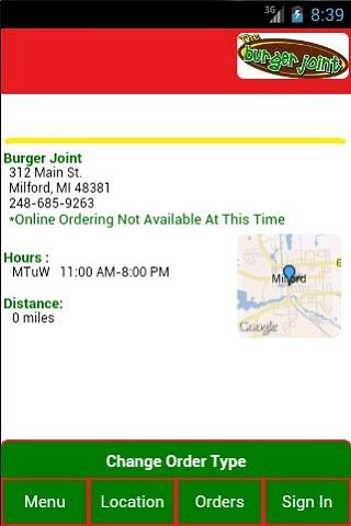 This is the Android app for quick and easy online ordering at the Burger Joint.