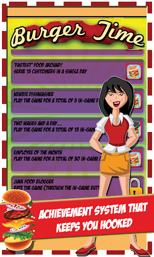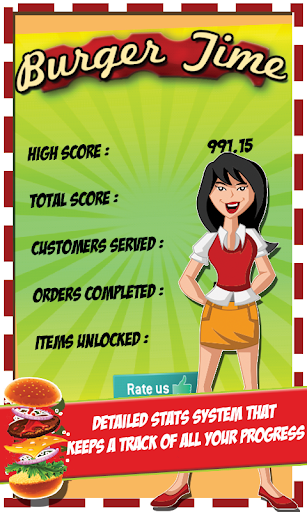 Burger Time tracks stats of everything you do. The number of customers you’ve served, the amount of cash you’ve earned, the number of days you’ve spent in the game – everything. The better you play, the more achievements you’ll unlock, and the more you can boast about it to your friends.