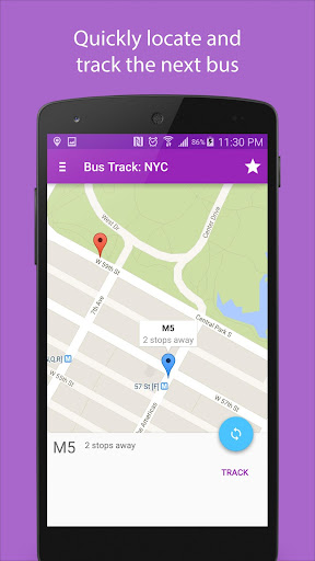 Bus Tracker NYC is a New Yorker’s Android solution to locating the next bus. Selecting a bus stop will give you the exact location of the next three buses. Due to the nature of NYC traffic, ETAs are not displayed, but I have added the ability to track the bus and notify you every 30 seconds of its position.