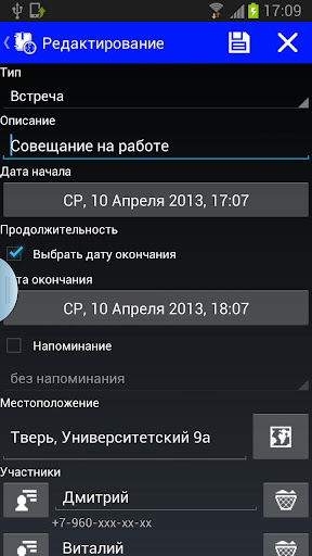 - Geo-services for the optimal path planning. Now you can see all the places on the map - business meetings, negotiations, and you can take it into account in planning new activities;
