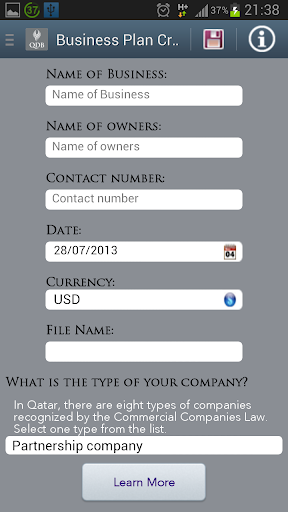 Disclaimer: Nothing in this application should be construed as a solicitation or offer, or recommendation, to acquire or dispose of any investment or to engage in any other transaction, or to provide any investment advice or service or to provide any guarantee or financial support by Qatar Development Bank on the basis of the business plan generated by the application.